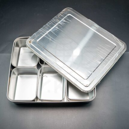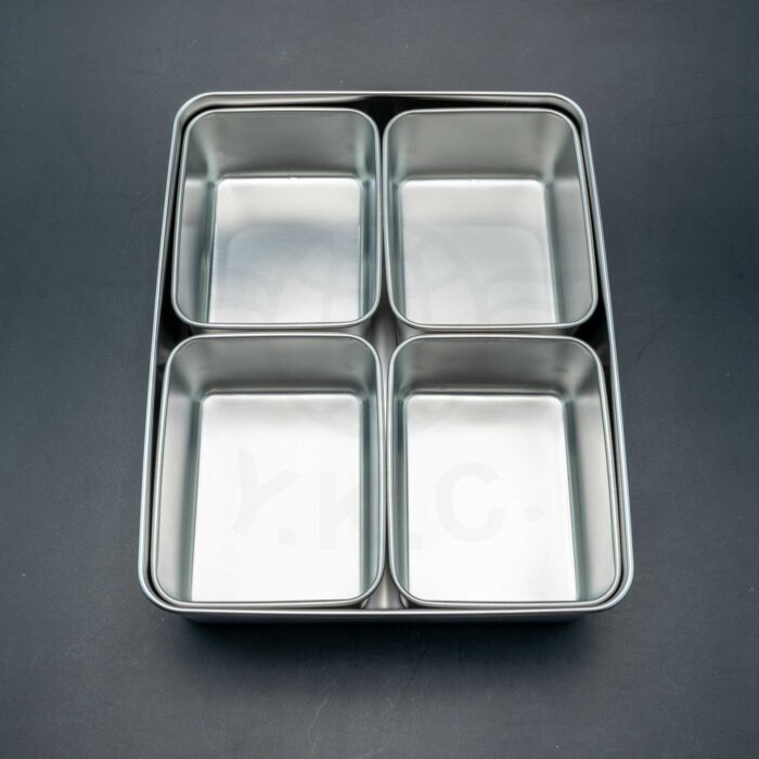 กล่องอาหาร กล่องเครื่องปรุงสแตนเลส ขนาด4 ช่อง พร้อมฝาปิด ใส่ได้ทั้งอาหารร้อน และเย็น ใส่ได้หลากหลายเมนู เช็ดล้างทำความสะอาดง่าย