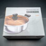 มีฝาแก้วสีชา สำหรับปิดหม้อ เพื่อกักเก็บความร้อน และสามารถเห็นอาหาร ที่กำลังปรุงได้อย่างชัดเจน