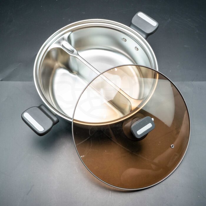 หม้อชาบู 2 ช่องฝาชา 30 CM วัสดุผลิตจากสเตนเลส 304 ให้ความแข็งแรง ทนต่อความร้อนได้ดี