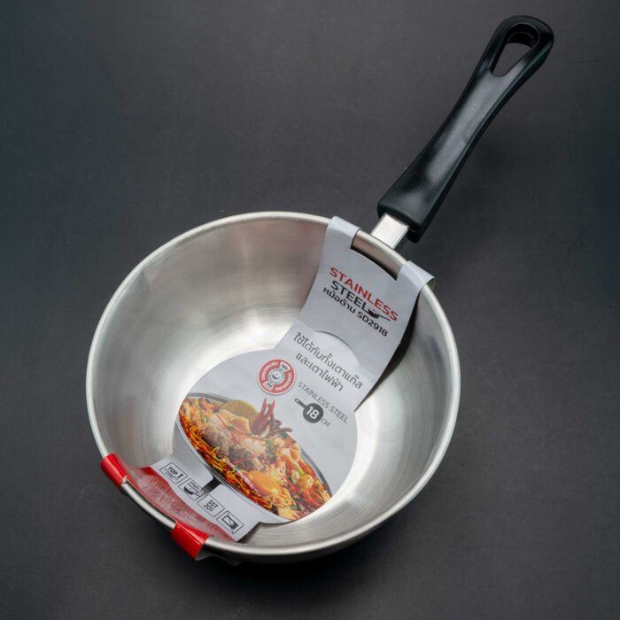 หม้อด้ามสแตนเลส ผลิตจากสแตนเลส คุณภาพดี ด้ามจับพลาสติก แข็งแรง จับถนัดมือ